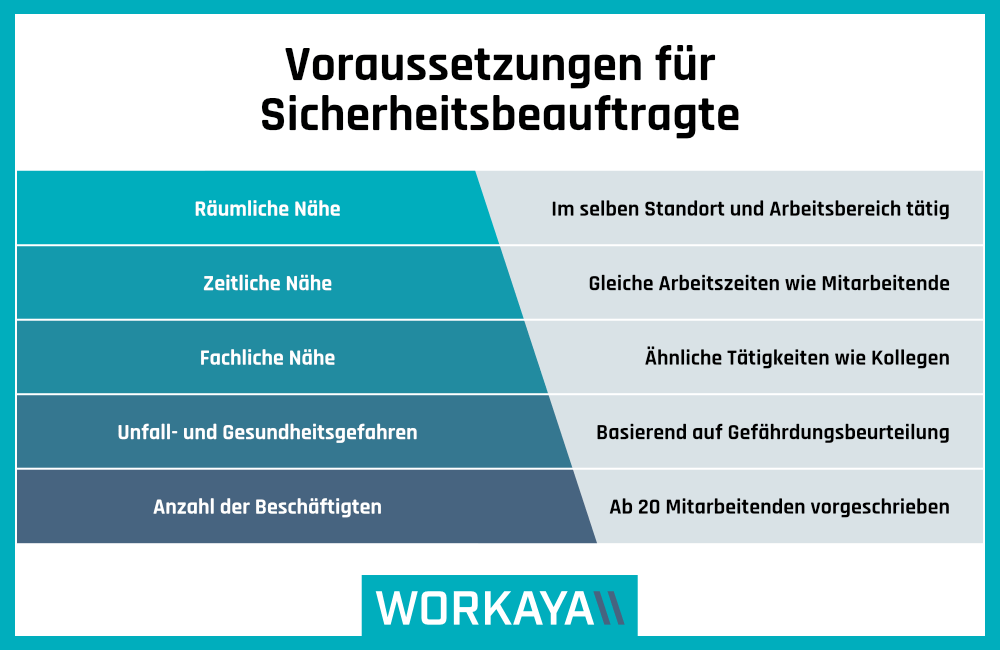 – Zeitliche Nähe: Sicherheitsbeauftragte sollten während der gleichen Arbeitszeiten wie ihre Kolleginnen und Kollegen tätig sein, beispielsweise in der gleichen Schicht. So sind sie jederzeit ansprechbar und können auf Sicherheitsprobleme unmittelbar eingehen.